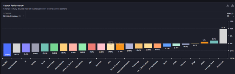 按交易所板块划分,本周大部分板块小幅下跌,仅隐私币和交易所平台币表现相对较好,表明市场机会仍以结构性为主。