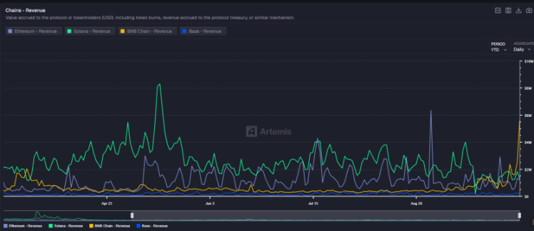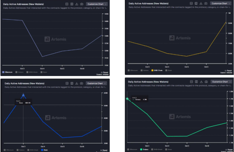 本周链上活跃度整体表现平平,唯独 BSC 链因受 CZ(赵长鹏)、何一等因素影响,活跃度大幅增加,并涌现出多个大市值 Memecoin,与新币上线形成共振效应(如币安人生、4、GIGGLE、BNBHOLDER 等)。