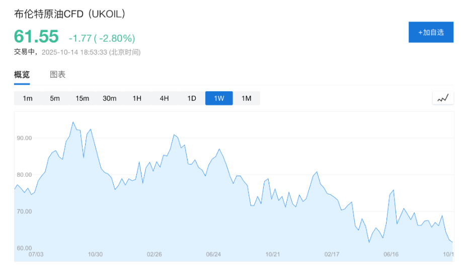 布伦特原油跌 2.8%,报 61.55 美元 / 桶。