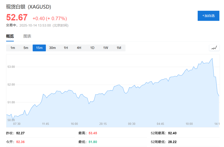现货黄金一度跌破 4100 美元 / 盎司,日内跌幅达 0.3%,现货白银一度失守 51 美元 / 盎司,日内跌约 2.8%。