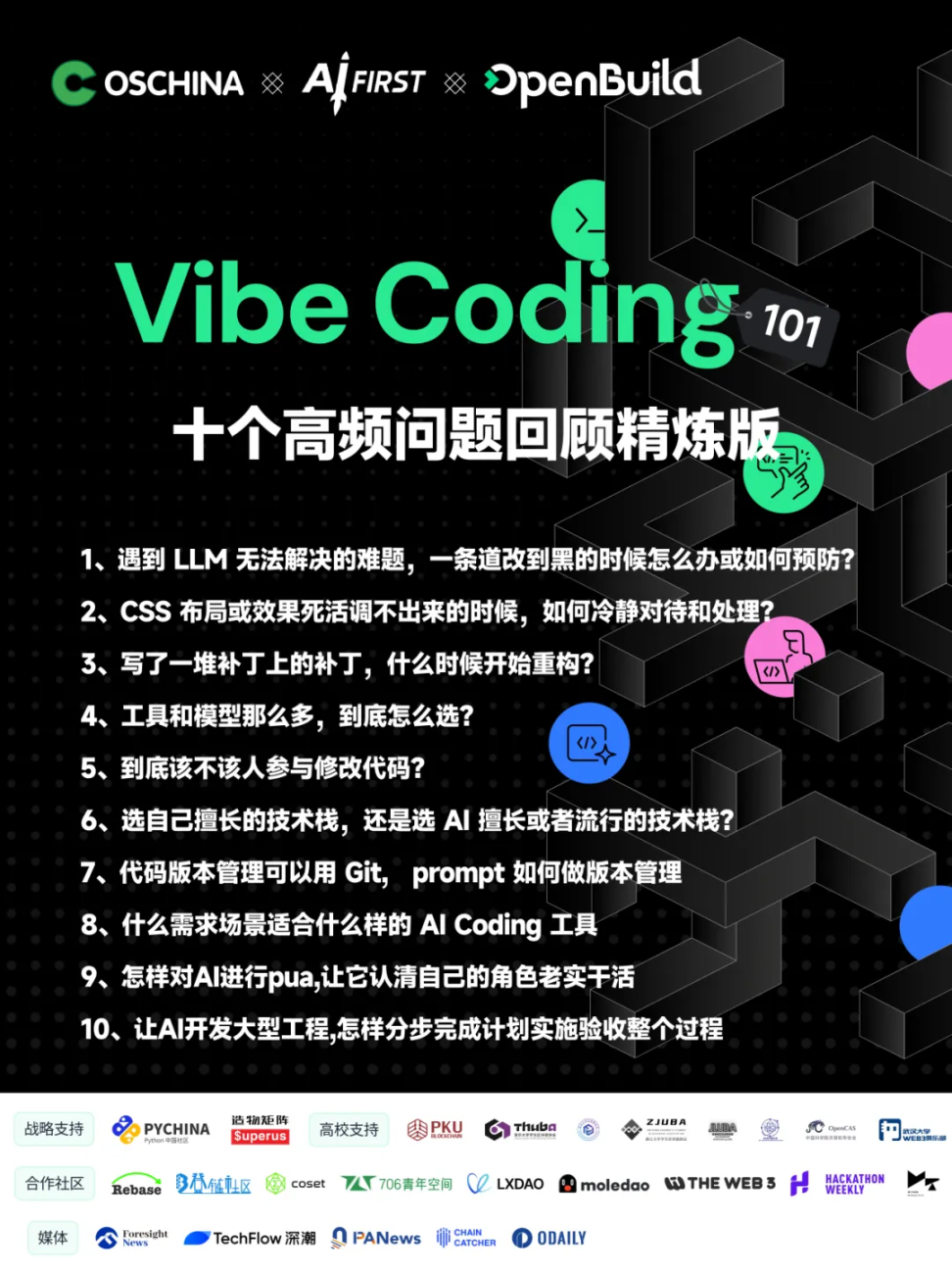 OpenBuild 社区联合开源中国请来了本次课程的核心讲师,直播讲解 Vibe Coding 十大高频卡点,精华看点如下: