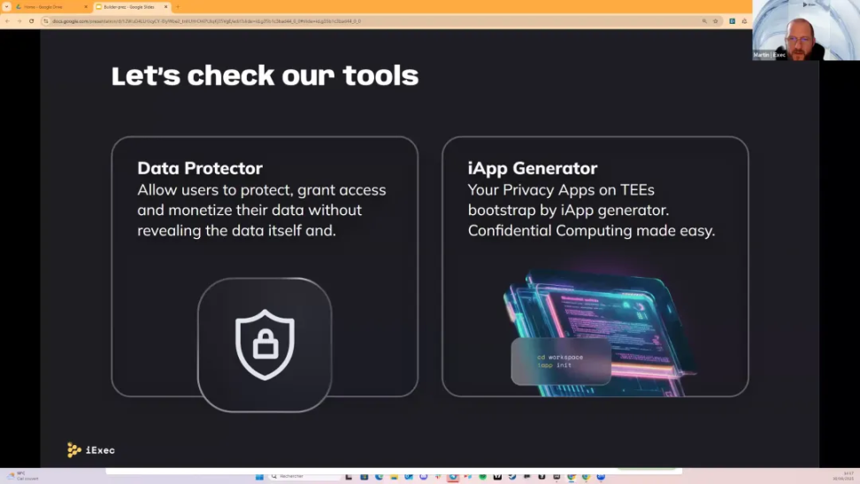 为降低开发门槛,iExec 将复杂的机密计算封装为 “开箱即用” 的工具,Martin 演示了完整操作流程,两大工具的功能与使用步骤如下: