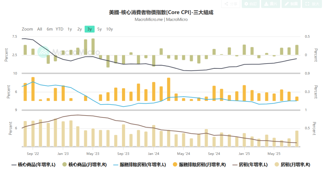 虽然美国 CPI 整体稳定,但核心 CPI 却在上升,进口商品价格上涨尤为明显。即将于 10 月 1 日生效的制药关税(税率高达 100%)预计将进一步推高相关商品价格,并对消费者支出造成压力。
