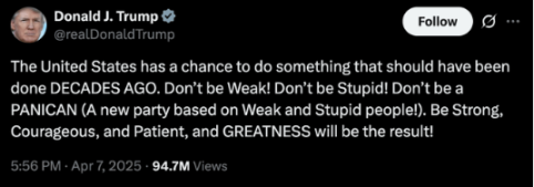 2025 年 4 月,特朗普宣布对全球进口商品征收 10%~100% 的关税。