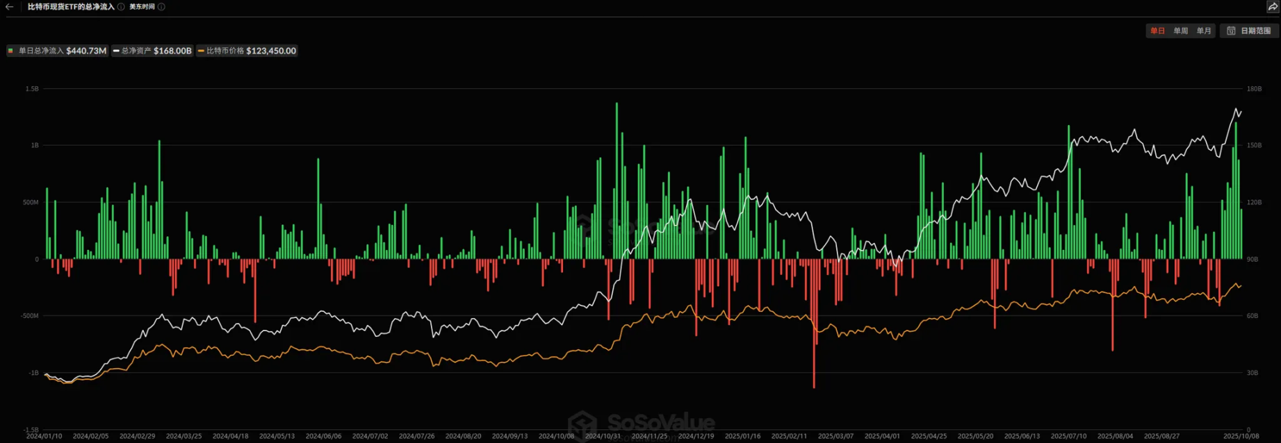 本周(10/10-10/17)微策略于 10 月 13 日再度增持比特币:花费 2700 万美元,以 123561 美元的平均价格购入 220 枚。尽管微策略仍保持一定增持频率,但单次买入数量较此前大幅减少;同时,上半年 BTC 创历史新高时,微策略股价未能突破历史高点,其对 BTC 上涨的推动作用较年初明显下降。