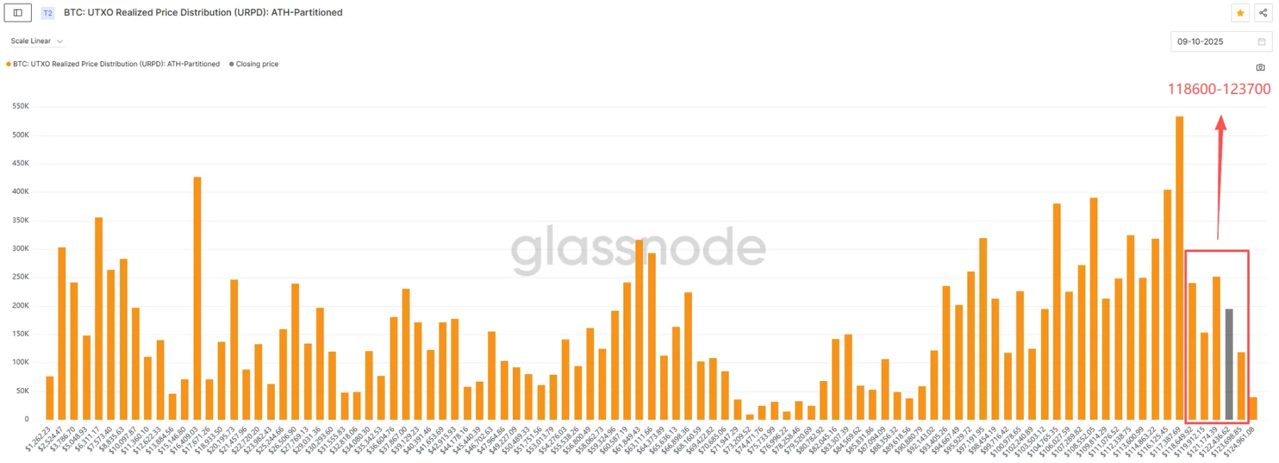从比特币筹码分布看,本周出现关键变化:此前 117000 美元附近的最高筹码峰部分松动,112300 美元附近则通过大量换手形成新的最高筹码峰。后续若市场反弹,需警惕 112300 美元附近的短期潜在阻力。