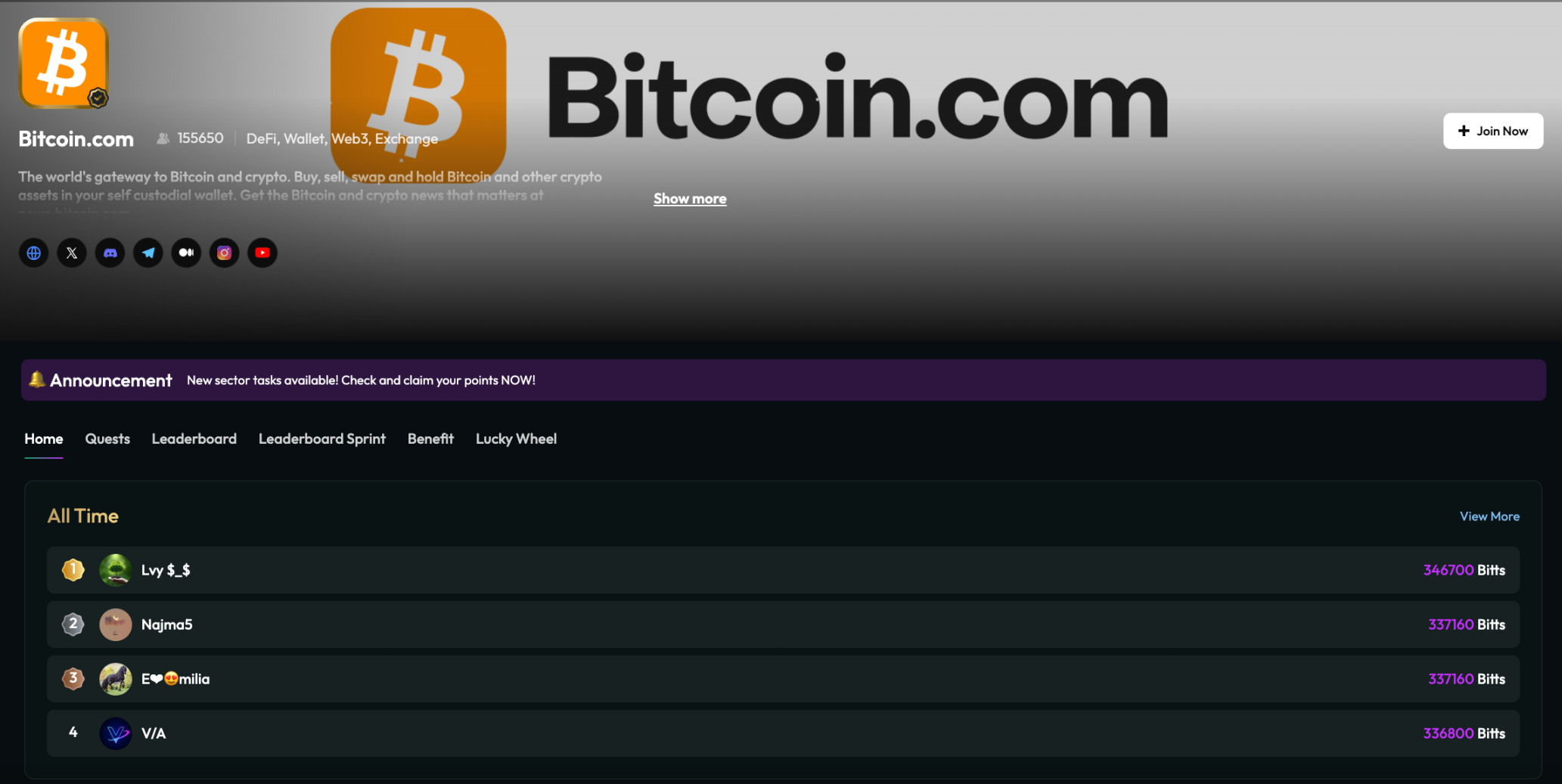而通过 Web3 用户生命周期管理平台 TaskOn 提供的链上验证的 Quest 系统、积分等级、里程碑奖励和社区任务工具,Bitcoin.com 实现奖励与产品使用挂钩推出了系列 Quest,用户通过持续的参与,以及在 Leaderboard 上的排行激励,让用户行为实现从“被动领取奖励”到“主动贡献价值”的转变。