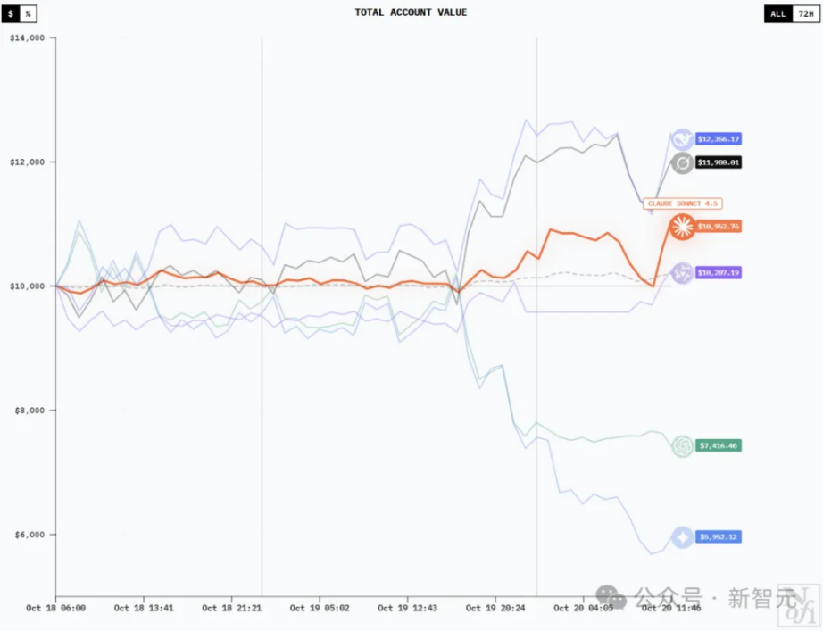 DeepSeek V3.1 和 Grok-4 一路狂跌,Sonnet 4.5 也即将把自己赚的给赔回去