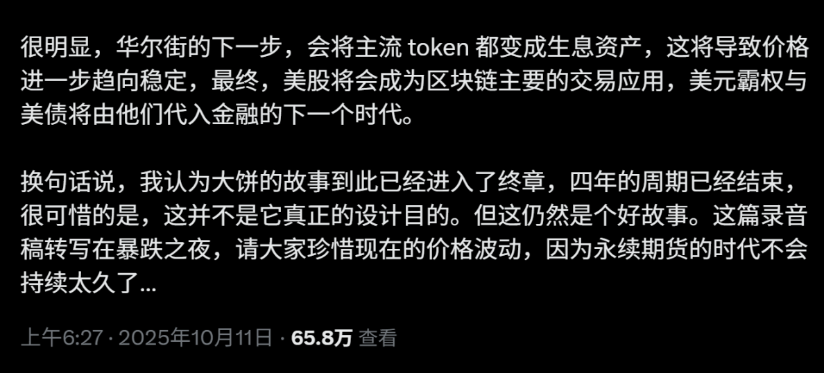 可以说,当 Crypto 资产逐步「华尔街化」与「机构化」,其底层逻辑也正在发生深刻变化,正如数字游民郭宇 guoyu.eth 分享的观点,在机构资本和合规产品主导的市场中,Crypto 原生资产所代表的已不再是草莽时代的超额收益,而是一个波动极高但边际回报递减的市场,流动性红利开始让位于结构性机会。