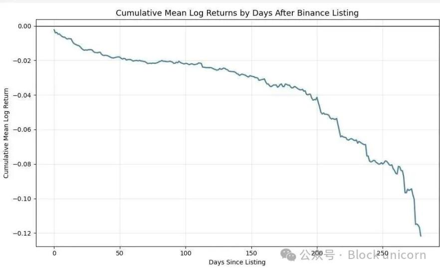 激励我进行这项研究的第一件事是 Scott Phillips 的一张文章(我其实很喜欢你的帖子和你的思维方式——这里没有针对个人的意思,希望你能原谅我)。他发布了一张很好看的图表,展示了币安上线后前 300 天所有币种的平均价格走势。图表本身没有任何问题——我也喜欢这种分析——但有一点让我不太舒服:「币安是行业的毒瘤」这句话。