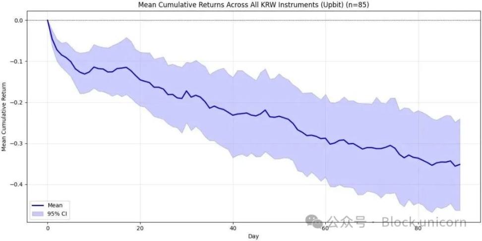 90 天后,Upbit 的表现略优于币安,但差异如此之大,以至于我们无法合理地声称 Upbit 是更好的上市平台。在这两种情况下,我们都看到了强劲的抛售压力——如果你深入思考,这实际上是完全合乎逻辑的。