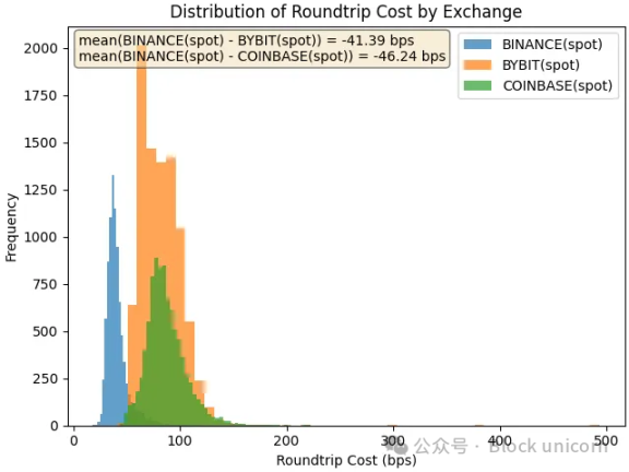 就 ONDO 而言,币安和 Coinbase 之间的往返成本大致相似 - Coinbase 略有优势(仅相差 1.77 个基点,可能是由于最小变动价位差异造成的)。