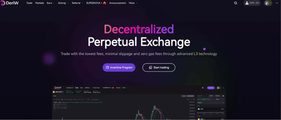 同时 DeriW 能够在提供接近中心化交易所的速度与流畅度体验,在保留 DeFi 应有的透明性和非托管属性,同时提供百余种资产的高杠杆交易,以为零 gas 与极低费用的结构,进一步为高频与专业用户打开了大门。