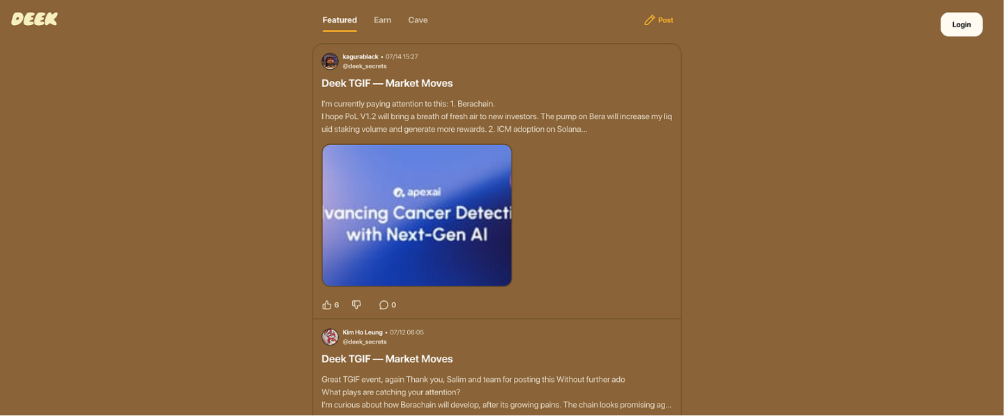 作为 Berachain 上的首个 SecretFi 应用,Deek Network 将匿名信息流、社交赏金和流动性激励结合,为生态带来了全新的交互模型,也为 SocialFi 赛道奠定了早期基础。