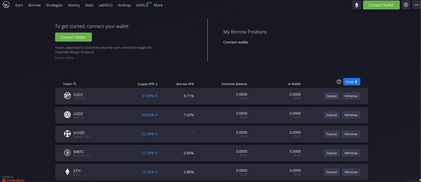 推动这轮上涨的不仅有协议自身的发展进展,还包括外部合作的催化。尤其是 Dolomite 与 World Liberty Financial(WLFI) 的潜在合作备受市场关注。双方正探索建立 treasury-linked 金库 的战略伙伴关系,并计划将 WLFI 的稳定币 USD1 引入 Dolomite 借贷体系。同时,Dolomite 联合创始人 Corey Caplan 也受邀担任 WLFI 技术顾问,进一步强化了双方合作预期。这一系列动作不仅为 Dolomite 带来了新的流动性想象空间,并且在 DOLO 的叙事被赋予更强的外部资源和政治背景的同时,有望帮助 Berachain 向更广阔的用户层与机构圈层扩散。