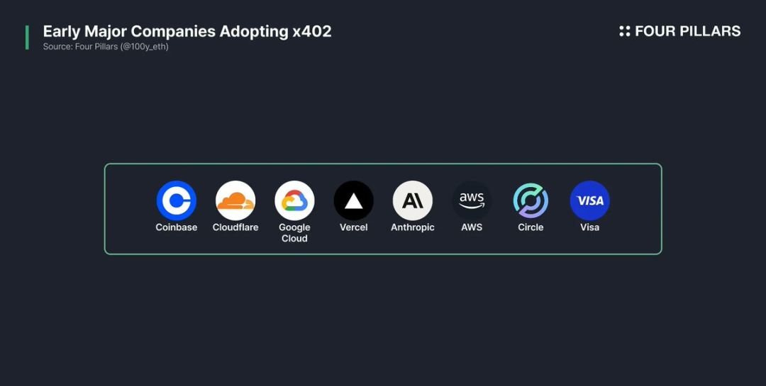 有趣的是,与典型的加密概念不同,x402 吸引了众多 Web2 科技巨头的关注,且这些企业已开始实际采用该协议。