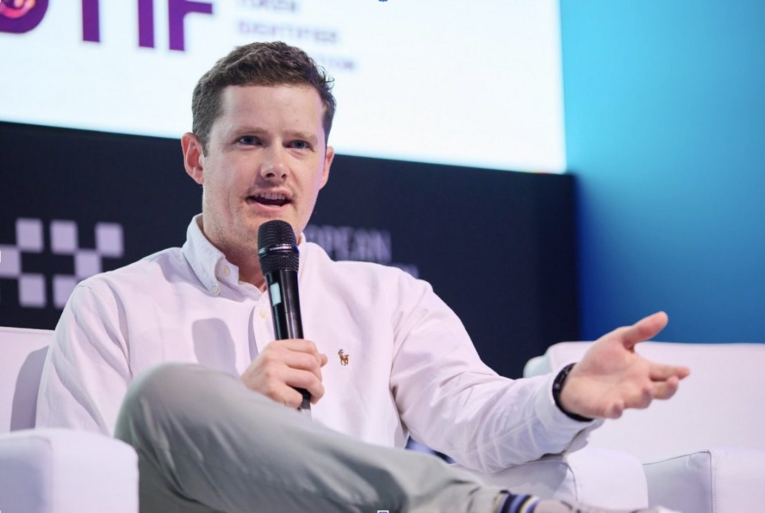 描述:Nikita Prokopenko 摄于欧洲区块链 2025 大会的活动现场。