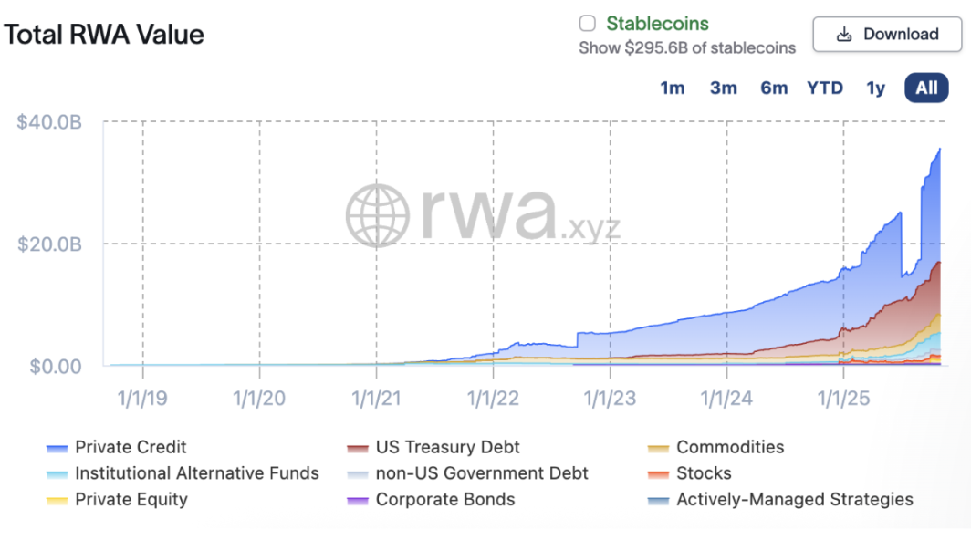 进入 2025 年以来,RWA——将房地产、债券、商品等传统资产代币化上链——正成为 DeFi 的“增量引擎”。据 RWA.xyz 统计,截至 2025 年 10 月 31 日,链上 RWA 总市值已超 350 亿美元,同比增长 150%(是 DeFi 增长率的 10 倍)。麦肯锡预测,到 2030 年,RWA 市场规模将达 10 万亿美元。