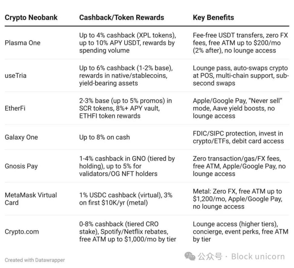 加密货币新银行之间的区别主要体现在收益率、返现率和地域覆盖范围上。但它们都解决了同一个核心问题:让人们能够使用自己的加密货币资产,而无需放弃自主保管权或频繁地将其兑换成银行存款。