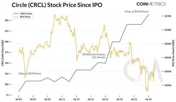 给你举两家公司的例子:泰达,USDT 稳定币的发行方,只有 100 多名员工,一年创造了上百亿美元的净利润,它今年前三季度的盈利已经超过了美国银行。Circle,USDC 稳定币的发行方,上市后市值暴涨 9 倍。