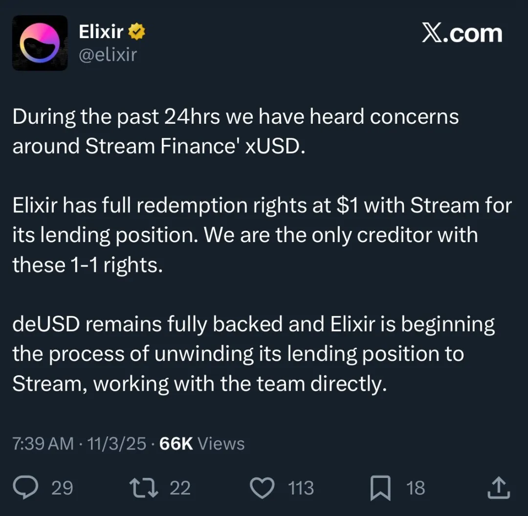 由于没有向这些 DeFi 用户披露这一情况,许多用户现在对 Stream 和 Elixir 都极为愤怒:不仅损失金钱,而且损失被社会化,以确保来自华尔街背景的富有的美国人保持利润。