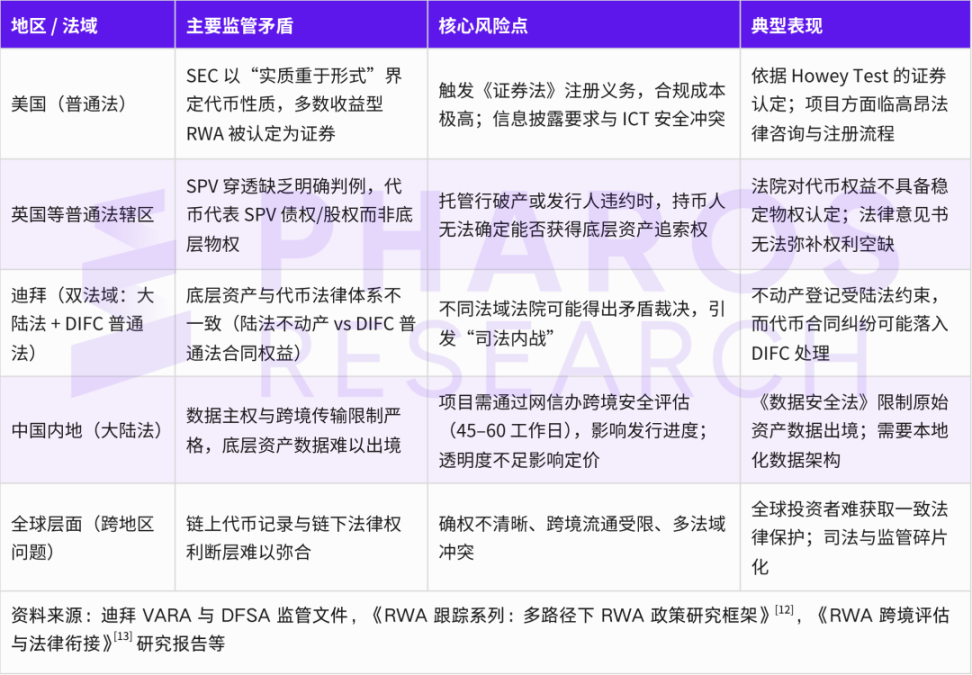 法律与监管的适配性是 RWA 规模化落地的首要障碍,核心矛盾在于链上代币转移记录与链下法律权益的断层难以弥合,导致资产确权与流通面临根本性的司法不确定性。
