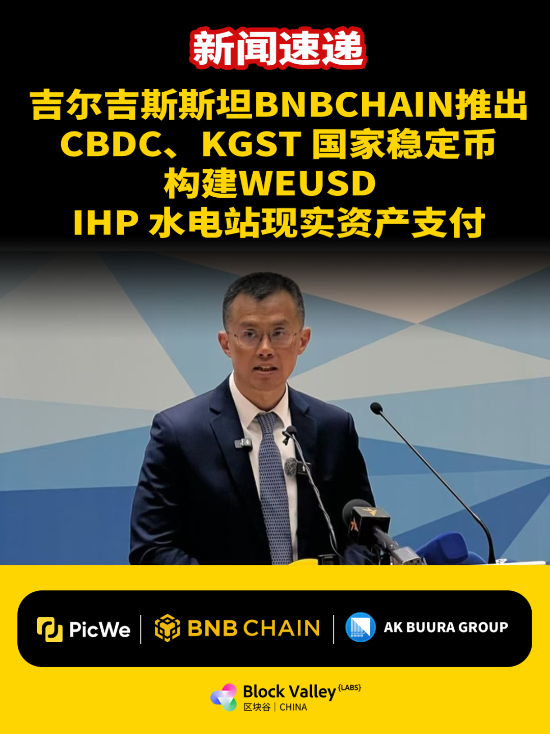 10 月 25 日,@cz_binance 访问结束后发文:吉尔吉斯斯坦即将发布 CBDC+ 稳定币(KGST),且都基于 @BNBCHAIN 构建。