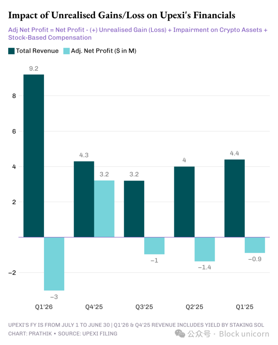 这种打法更像对冲基金,而非普通 DAT。但当你去看 Upexi 的现金流时,同样的担忧又浮现了——和 SharpLink 如出一辙。