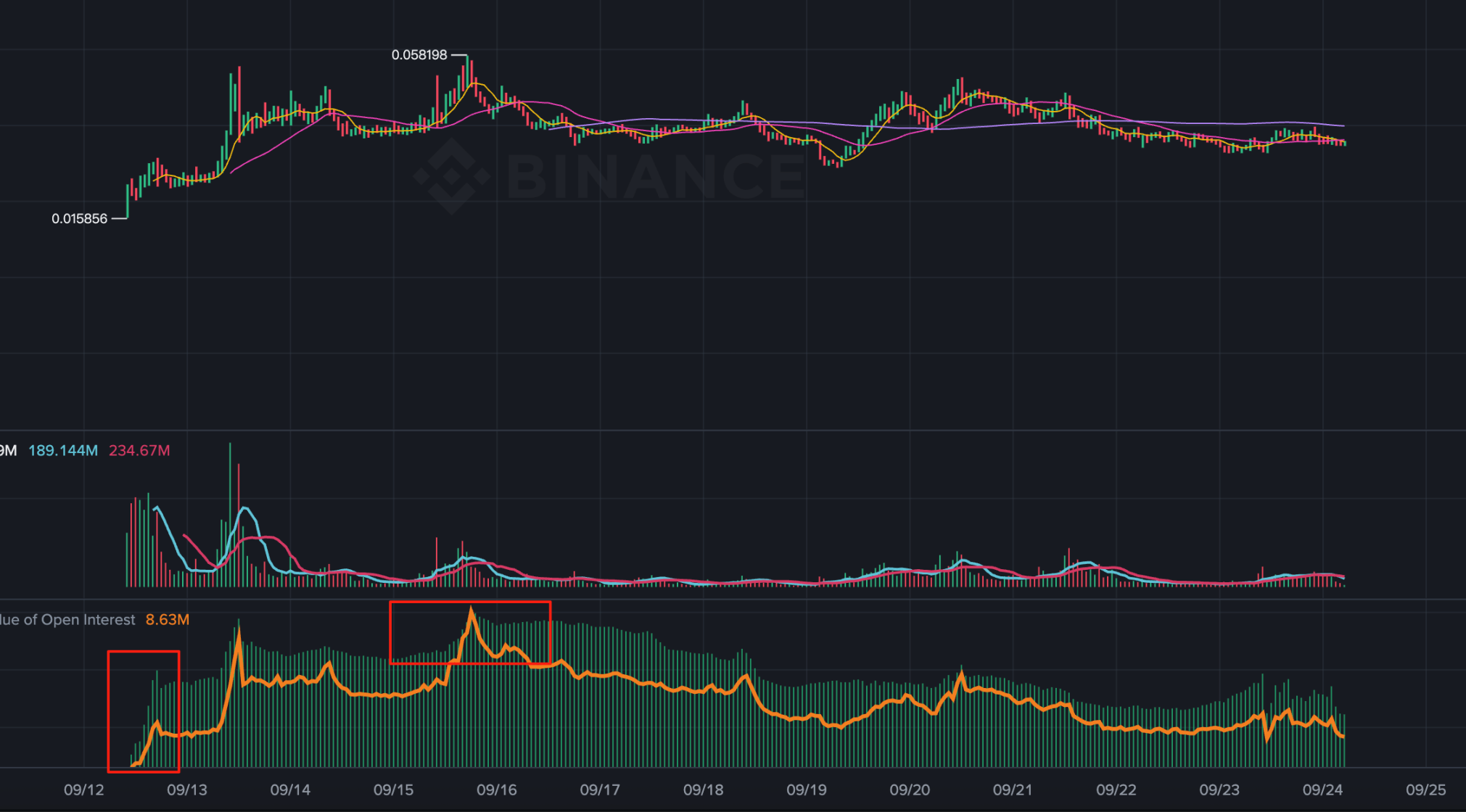 现货全在做市商的手里,只要做市商不砸盘,通过资金费率市场,在 9/12–9/15 拉升阶段,OI 持续提高,资金费率多次飙升,
