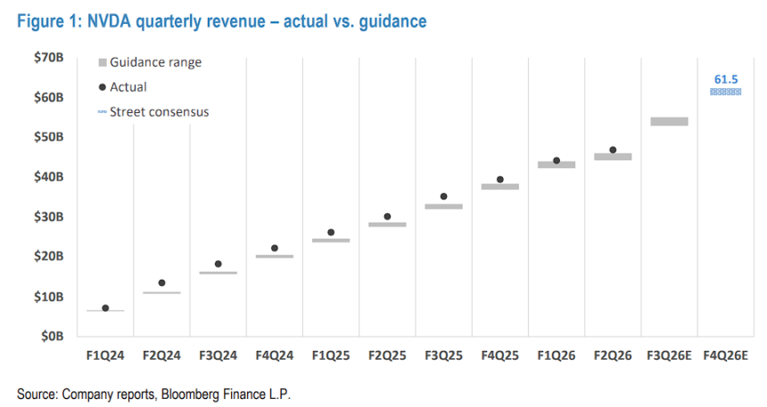 大摩将英伟达 10 月季营收预期从此前的 544 亿美元上调至 550 亿美元,明年 1 月季营收预期从 612 亿美元上调至 631 亿美元。分析师指出,10 月季和 1 月季各实现 80 亿美元的季度环比增长将创下行业历史最高纪录。