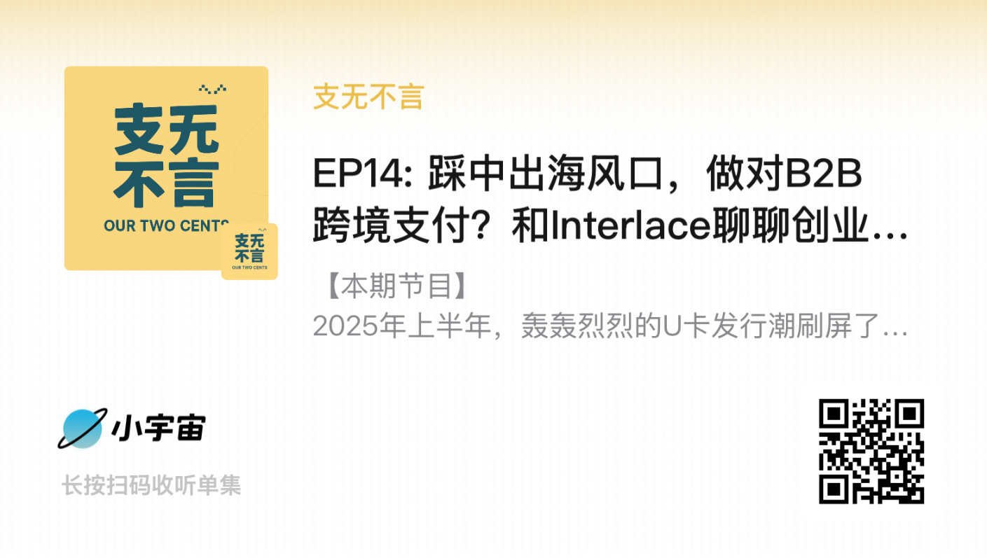 本期节目,我们探讨了 Interlace 的入局时点和切入角度,踩中中国制造业出海大浪潮的风口,Interlace 都做对了哪些事情?有哪些核心判断?新需求诞生在哪些非典型客户、非典型场景中?稳定币与现有企业财务系统要如何融合?以及未来十年可能颠覆的金融格局。