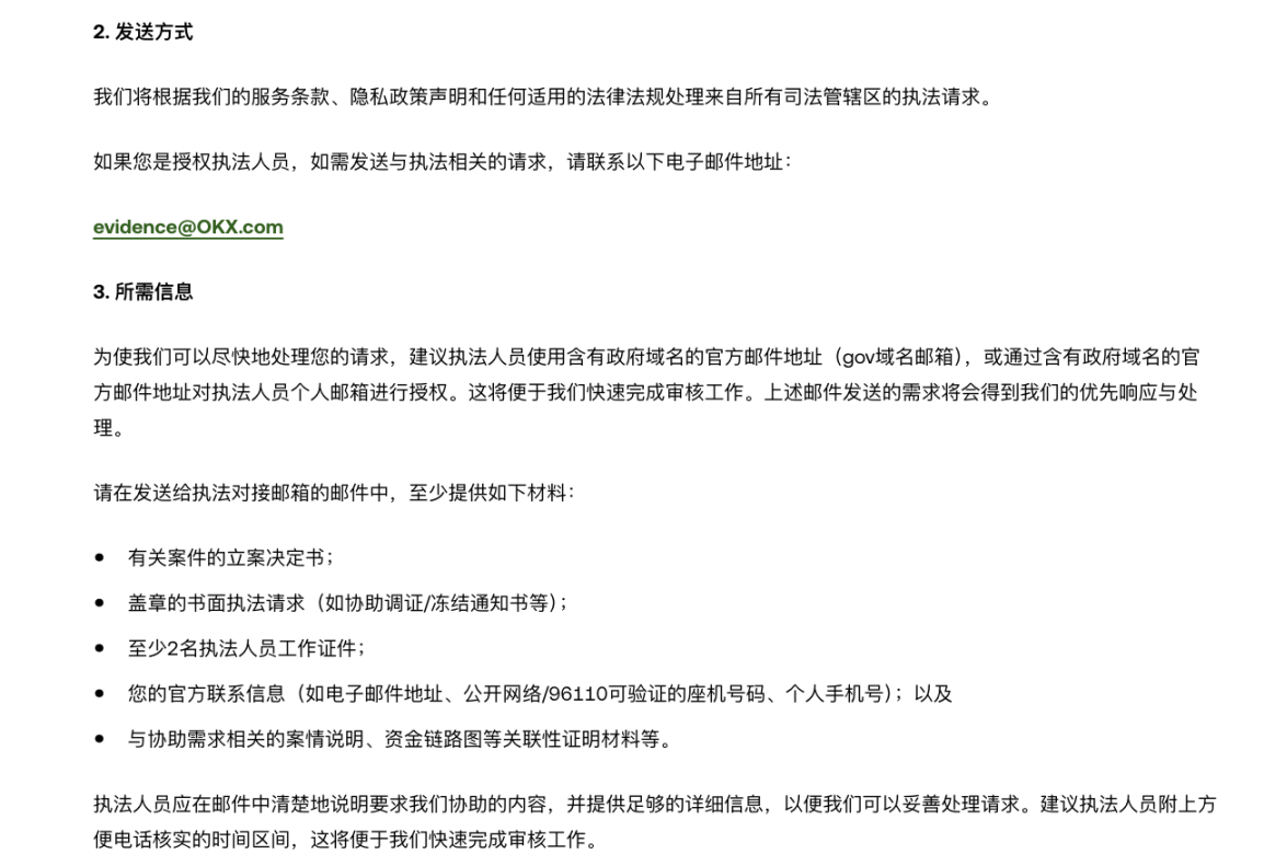 (上图为欧易官网的「执法请求指南」,来源欧易官网)