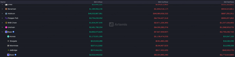 过去半年,Base 的资金一直在往外跑,六个月净流出超过 27.7 亿美元。对于依赖生态扩张的公链而言,资金疲软意味着开发者与用户流失风险上升。生态迫切需要通过代币引入新的激励力量,发币已成为突破流动性瓶颈的必然选择。