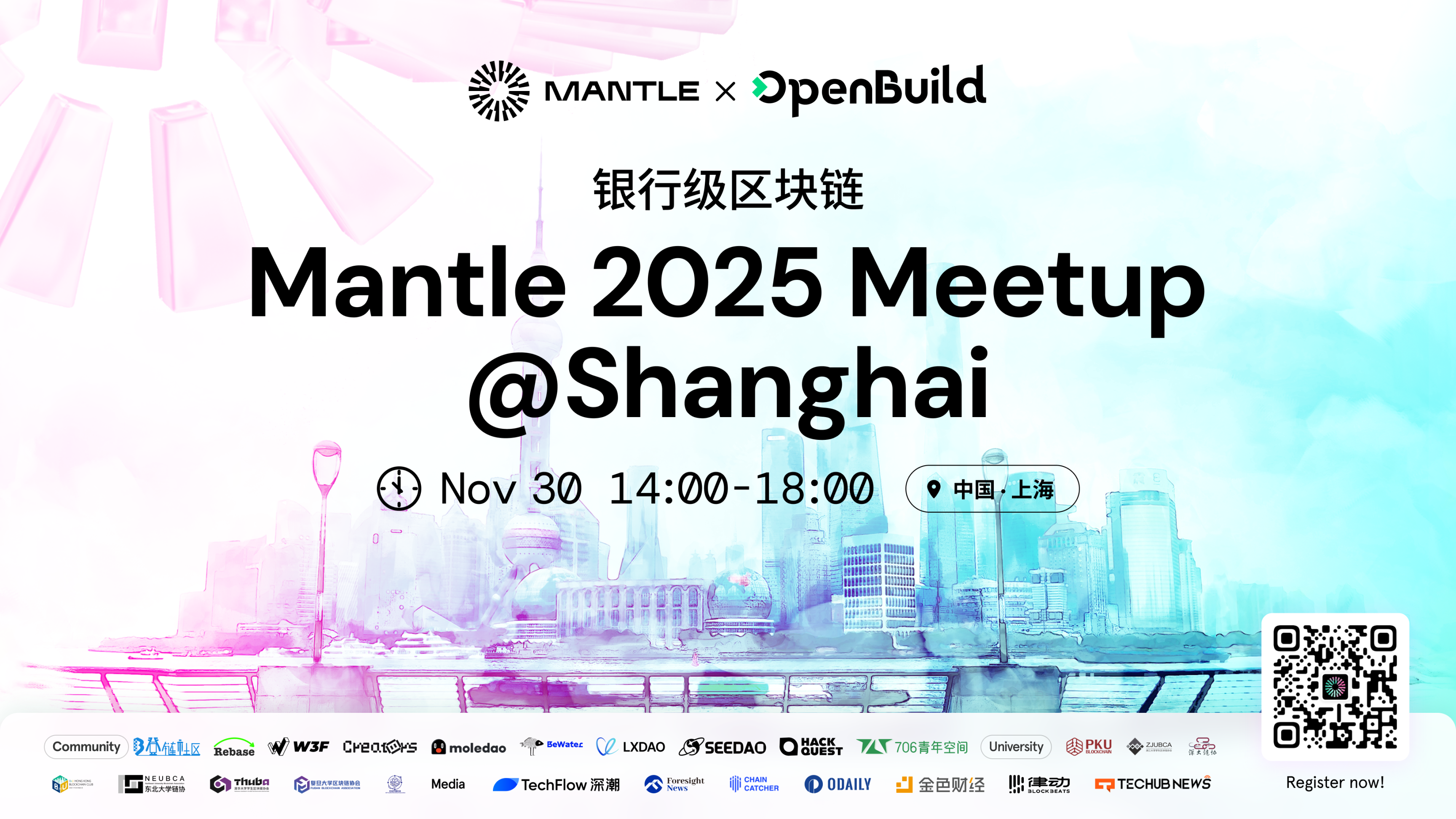 Mantle 华语区 2025 线下巡回聚会重返上海,为区块链开发者、创业者和爱好者带来一场技术与创新的思想碰撞。