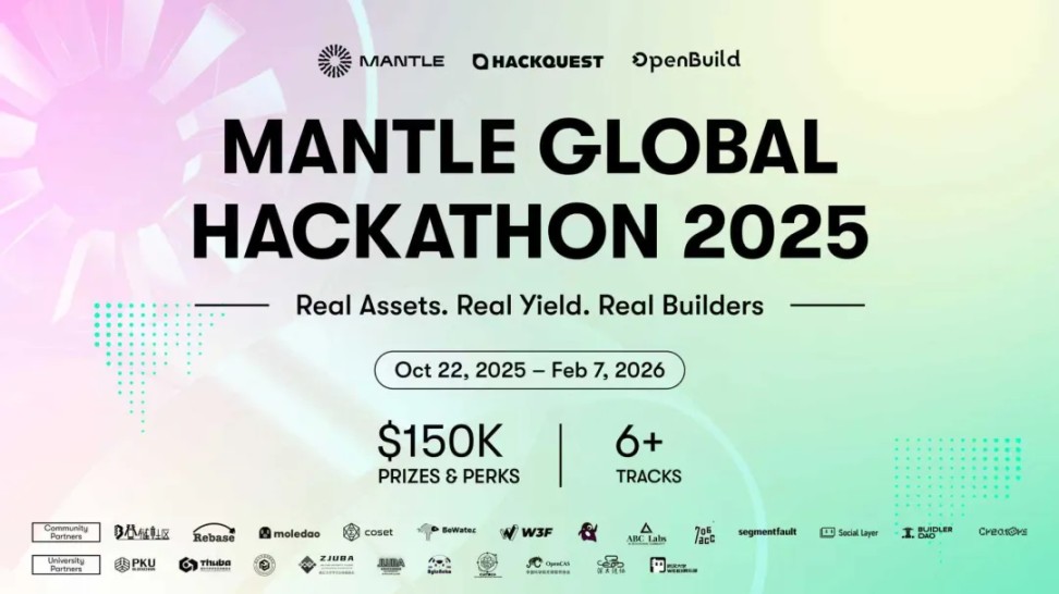 近期, Mantle 全球线上黑客松已于 2025 年 10 月 22 日正式启动,将持续至 2026 年 2 月 7 日,为开发者提供了充分的时间打造创新项目。