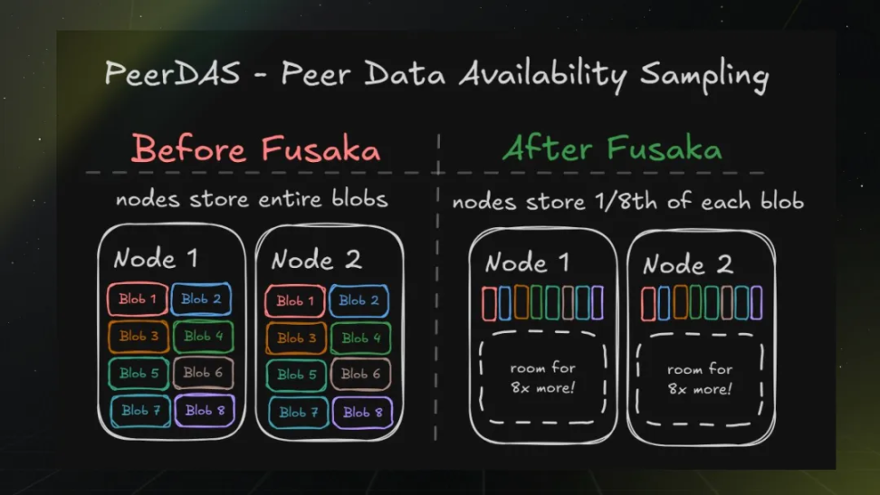 PeerDAS 是 Fusaka 硬分叉的 “核心亮点” 升级。