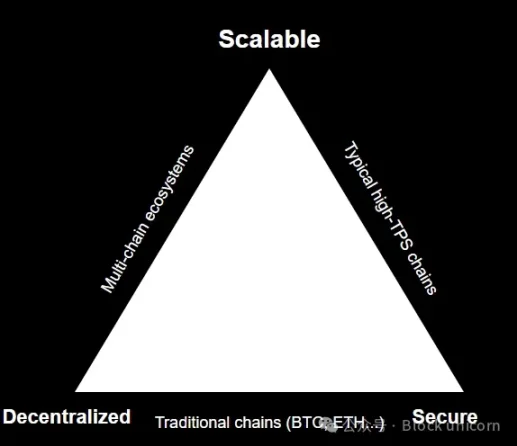 自区块链技术诞生之初,所有区块链都面临着区块链三难困境:即所有区块链只能在安全性、可扩展性和去中心化这三大核心属性中实现两项。像以太坊这样的区块链虽然安全且去中心化,但速度仍然很慢,而且费用昂贵。每笔交易都必须经过所有节点的验证,这造成了瓶颈,限制了吞吐量,推高了 gas 费用,严重降低了区块链的可用性。