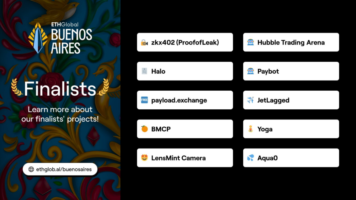 ETHGlobal 布宜诺斯艾利斯黑客松活动于 11 月 23 日落下帷幕。本次黑客松汇聚了以太坊生态系统中的顶尖人才和专家,吸引了诸多开发者团队探索区块链技术的新应用场景。此次活动的奖金达 50 万美元。