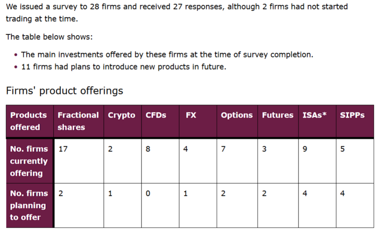英国 FCA 对 17 家拥有交易功能相关应用的跨机构审查也给出了类似结论:多数平台已同时提供股票碎股、加密、CFDs、外汇、期权与期货,且仍有超过 10 家计划继续扩展资产线,以降低用户在不同市场之间切换的成本。