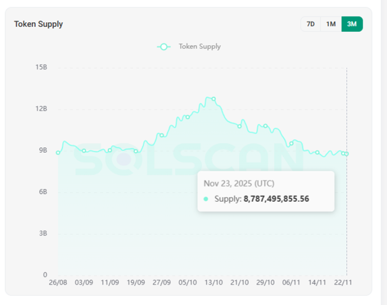 USDC 下降背后,主要是 Solana 链近一个月的 USDC 发行量下降了 18.24%,10 月 11 日,Solana 链上发行的 USDC 总量约为 128 亿美元,到 11 月 23 日则下降至 87 亿美元,总量减少了 41 亿枚。