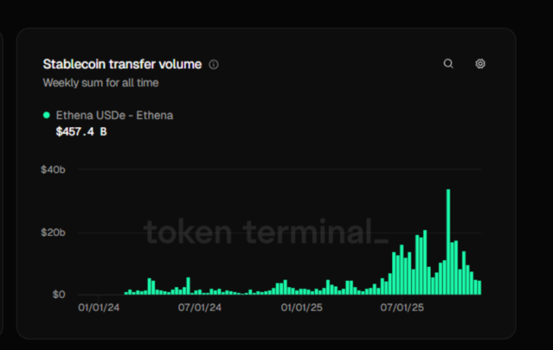即便 Ethena 在今年 Q3 创下了 1.51 亿美元费用捕获的最高纪录,但事实上还是无法抵挡由于收益率大幅下跌导致的市场信心缺失。目前 USDe 的收益率虽然已经回升到 5% 以上,但总体的供应量和交易量都处于下滑状态。