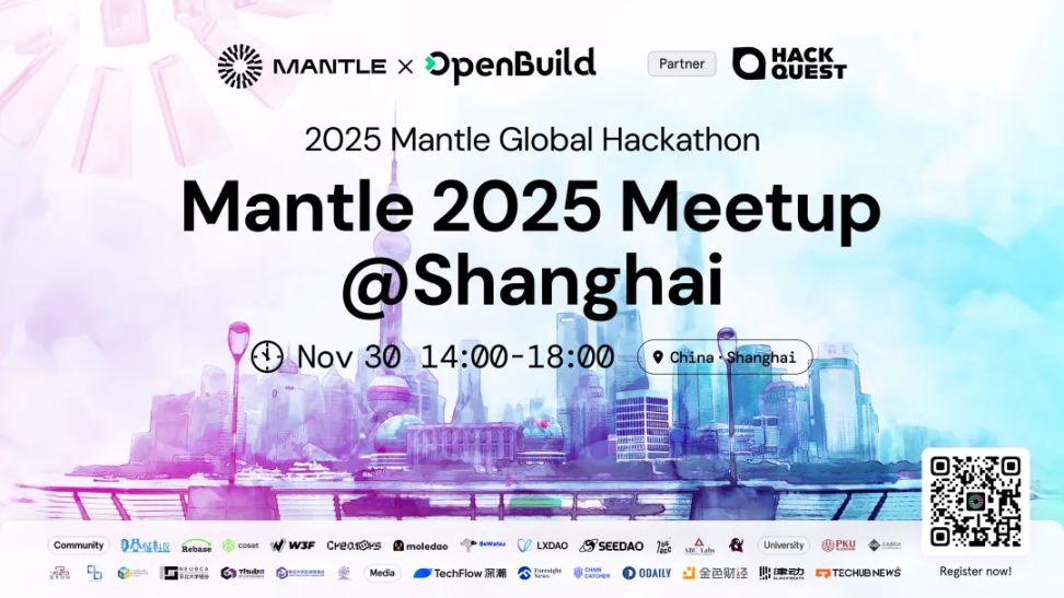 由 Mantle 与 OpenBuild 联合呈现的 Mantle Shanghai Meetup 即将拉开帷幕。无论你是关注 RWA、AI、DeFi 等热门赛道的开发者,还是准备在 Mantle Global Hackathon 中大展身手的 Builder,这都是一次不容错过的线下深度交流机会。
