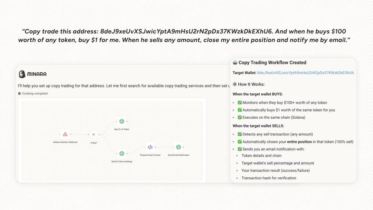 在信息高度密集、资产波动剧烈的市场环境中,无论是加密资产还是传统股票,如何将‘获取信息 → 做出判断 → 完成执行’这一链路变得更短、更自动化,已成为整个行业共同的探索方向。在链上资产领域,Minara 代表的是一种新的路径:用对话式界面承接完整链路,让决策与执行真正融为一体。未来将扩展其他的数字金融领域。