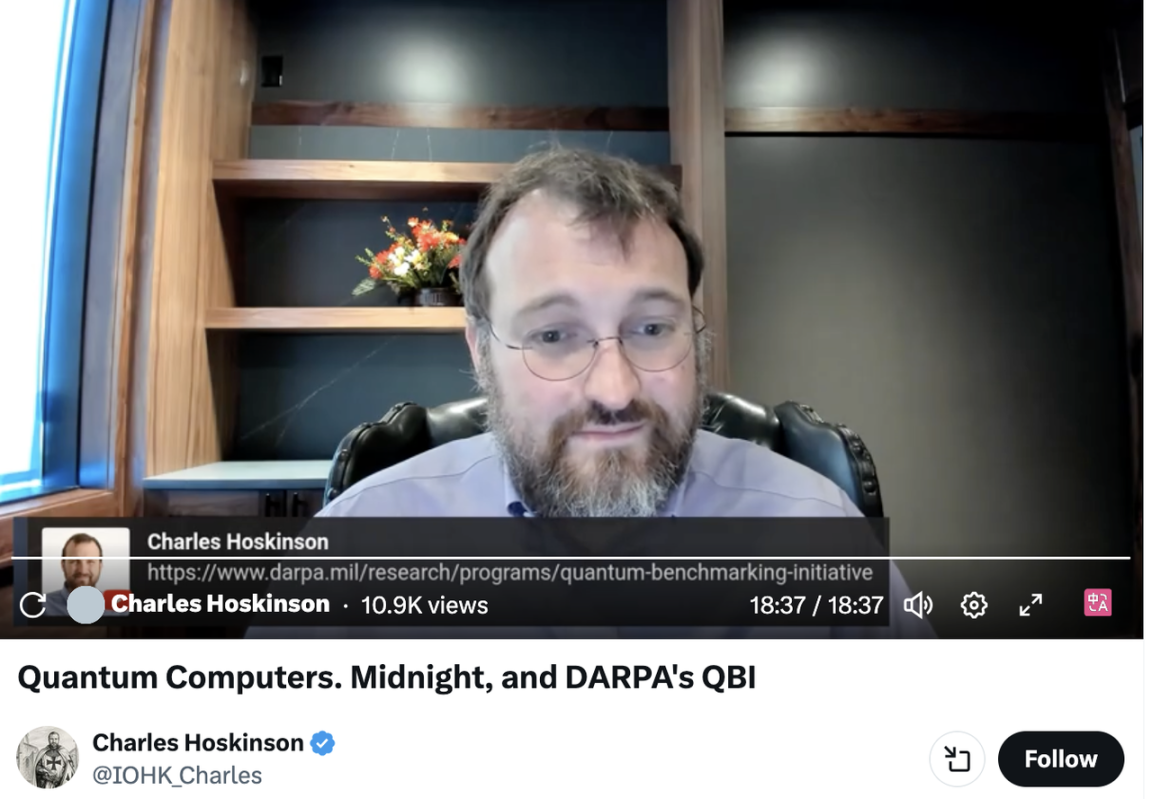 Cardano 虽然目前仍使用 Ed25519 签名,但其团队将量子准备视为长期差异化优势。创始人 Charles Hoskinson概述了一个结合独立证明链、Mithril 证书和符合 NIST 标准的后量子签名的计划。