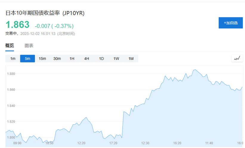 日本 10 年期国债拍卖成为周二市场企稳的关键。拍卖前,基准国债收益率达 1.88%,创 17 年新高,这一相对较高的收益率水平吸引了包括养老基金在内的投资者入场。