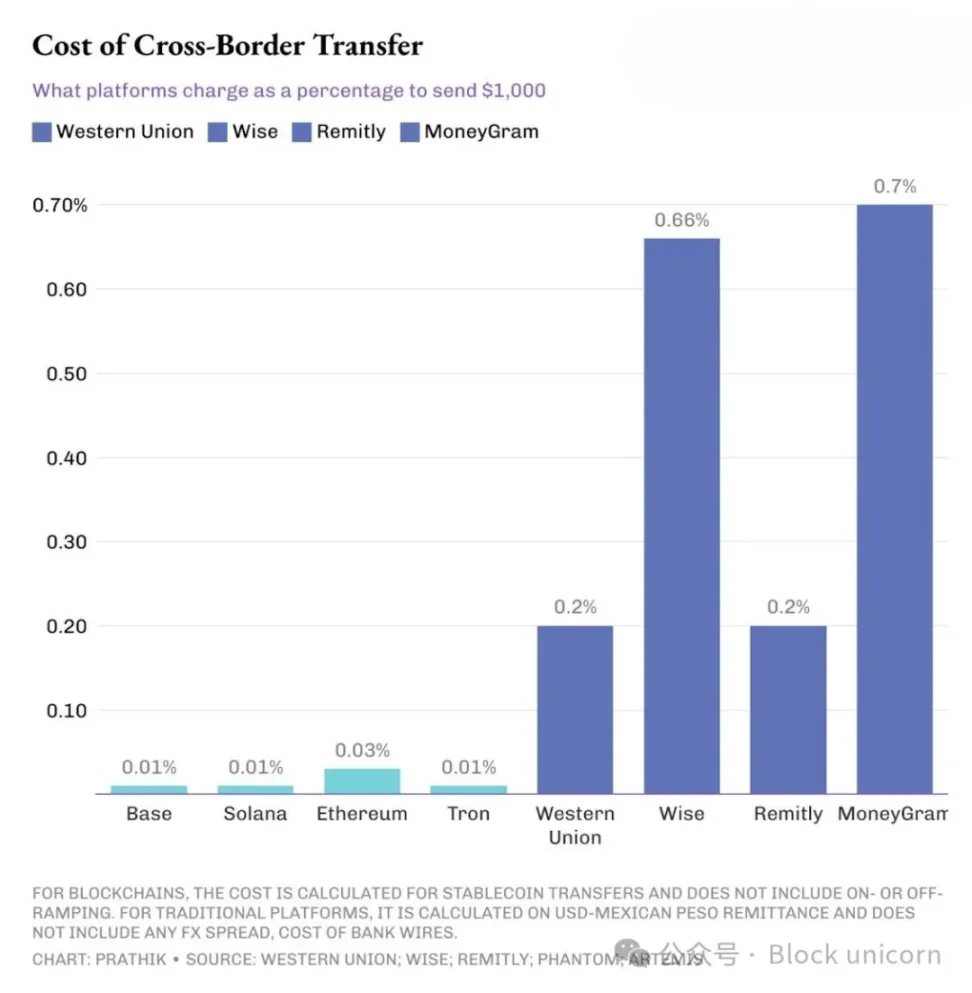 相比之下,在以太坊、Solana 或 Tron 上进行 USDC 或 USDT 转账,只需几秒或几分钟即可完成结算,手续费最高仅为 0.3 美元。尽管如此,传统的跨境支付平台仍然占据主导地位。为什么?