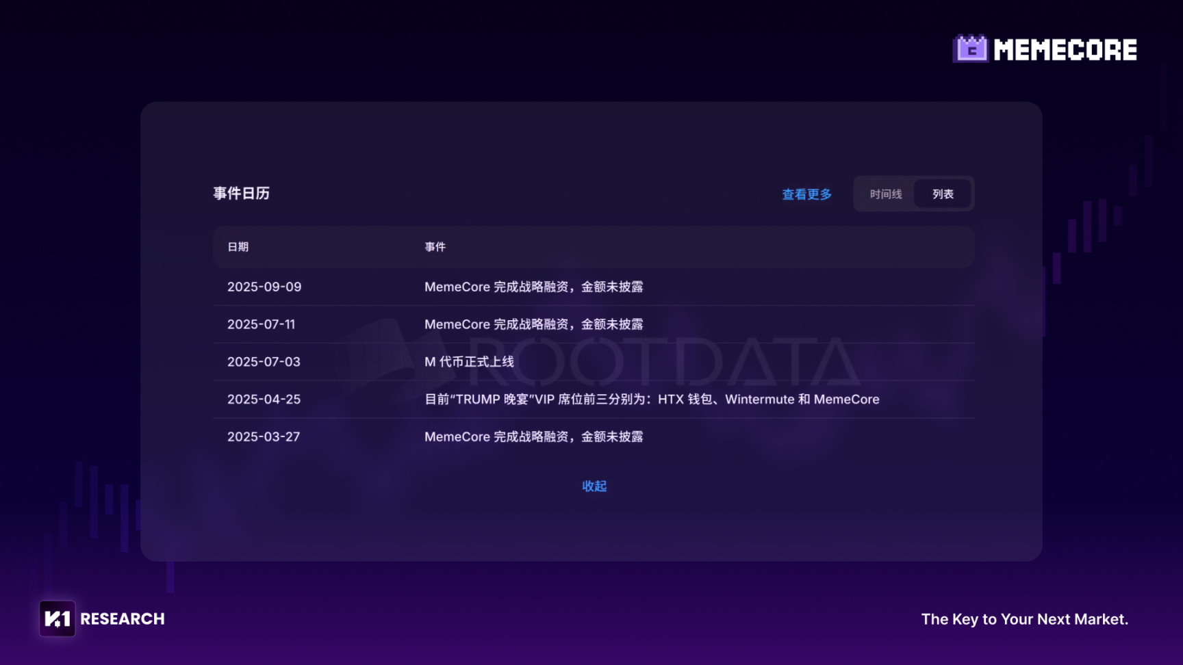 2025 年 3-4 月,MemeCore 宣布完成战略融资。这是外部市场首次将其视为独立生态,而不仅是社区实验性项目。
