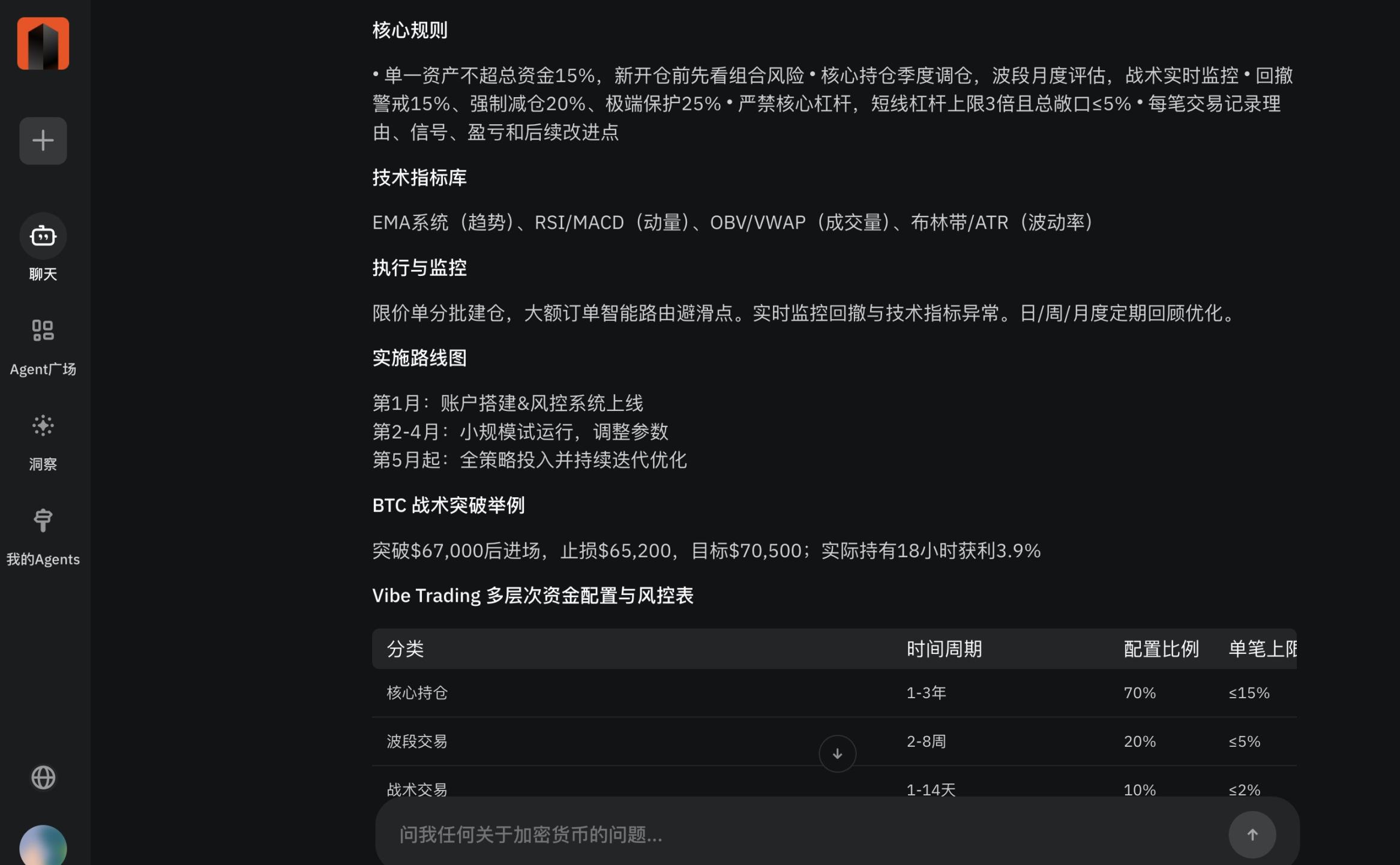 Vibe Trading = 用你的 vibe(世界观 + 节奏感),加上资金配置和风险规则,再借助 AI,把「直觉」变成可以反复执行的体系。