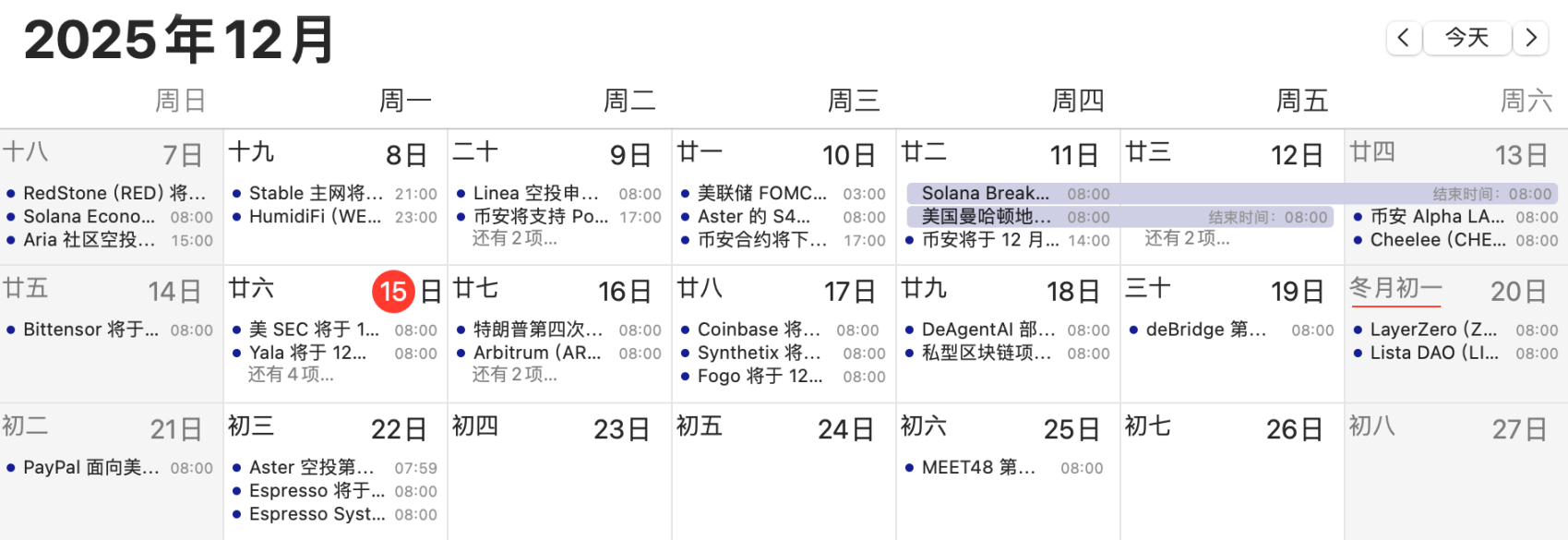 本周(2025 年 12 月 15 日 - 12 月 21 日)Web3 大事件不容错过,下图是本周精彩预告: