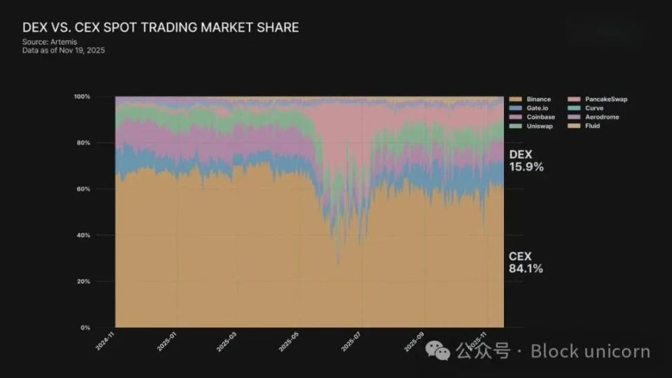 去中心化交易所虽然发展迅速,但绝大多数交易量仍然发生在链下,在中心化平台内部进行。